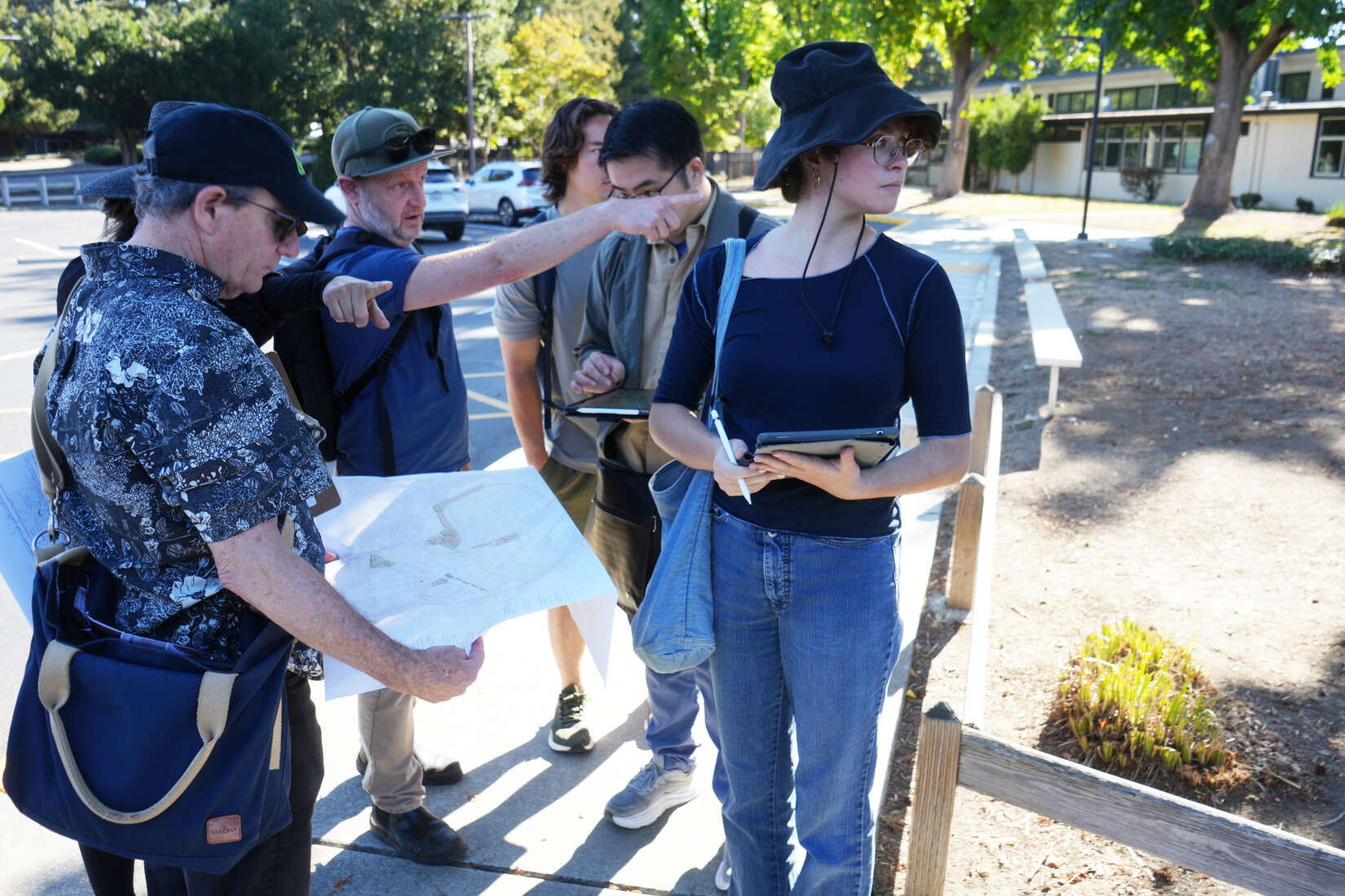 George (centered) on a site visit to Mountain View Whisman School District