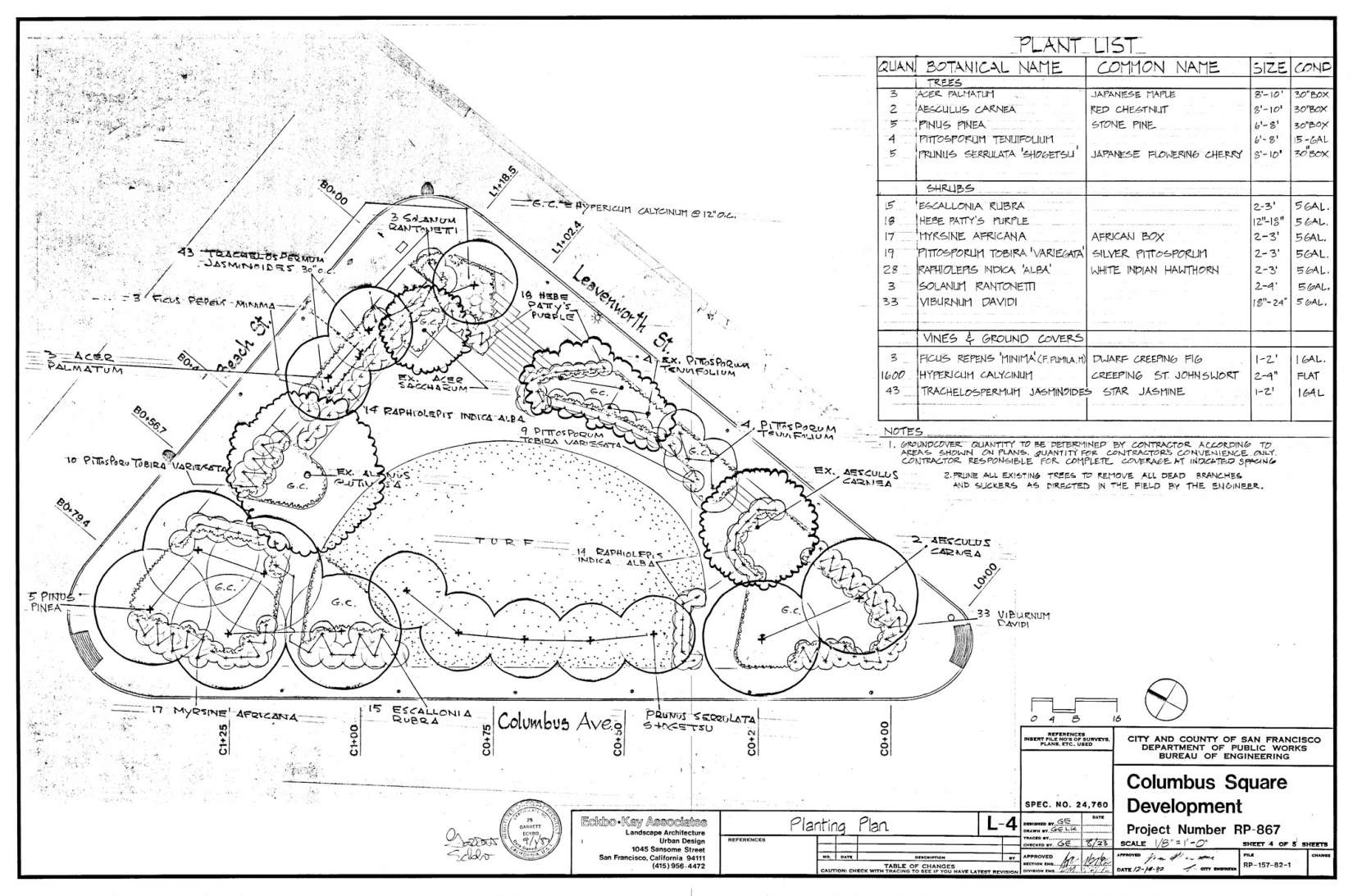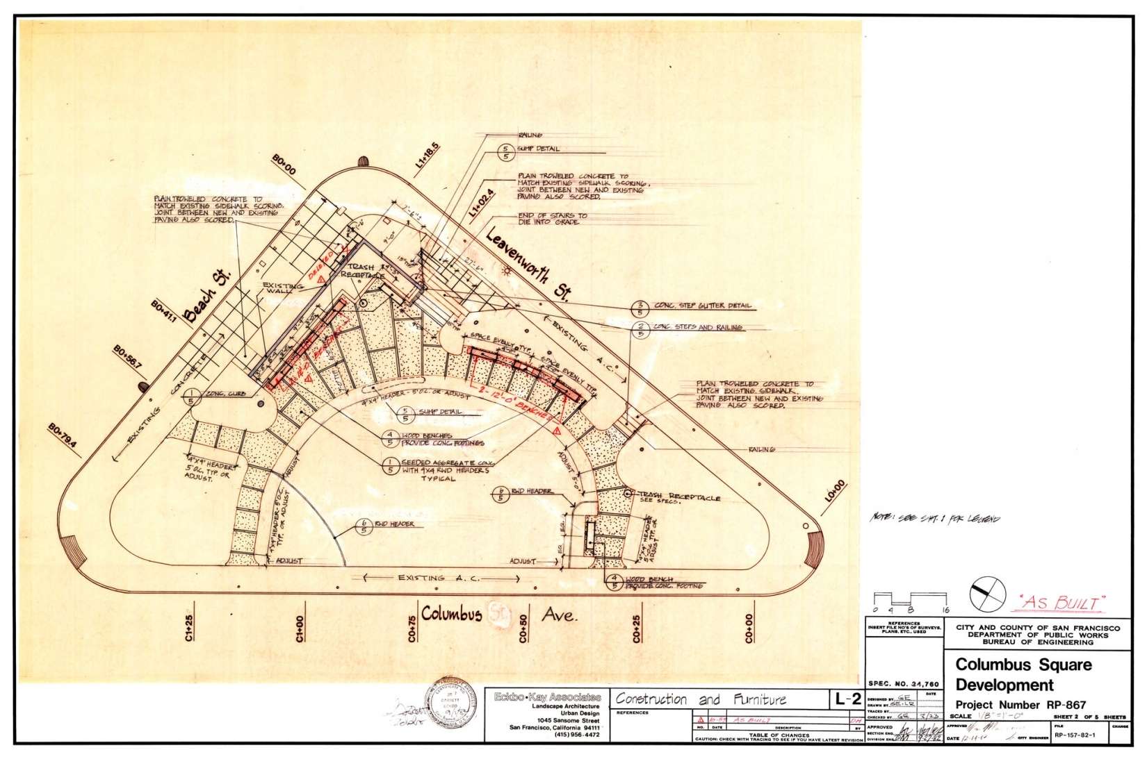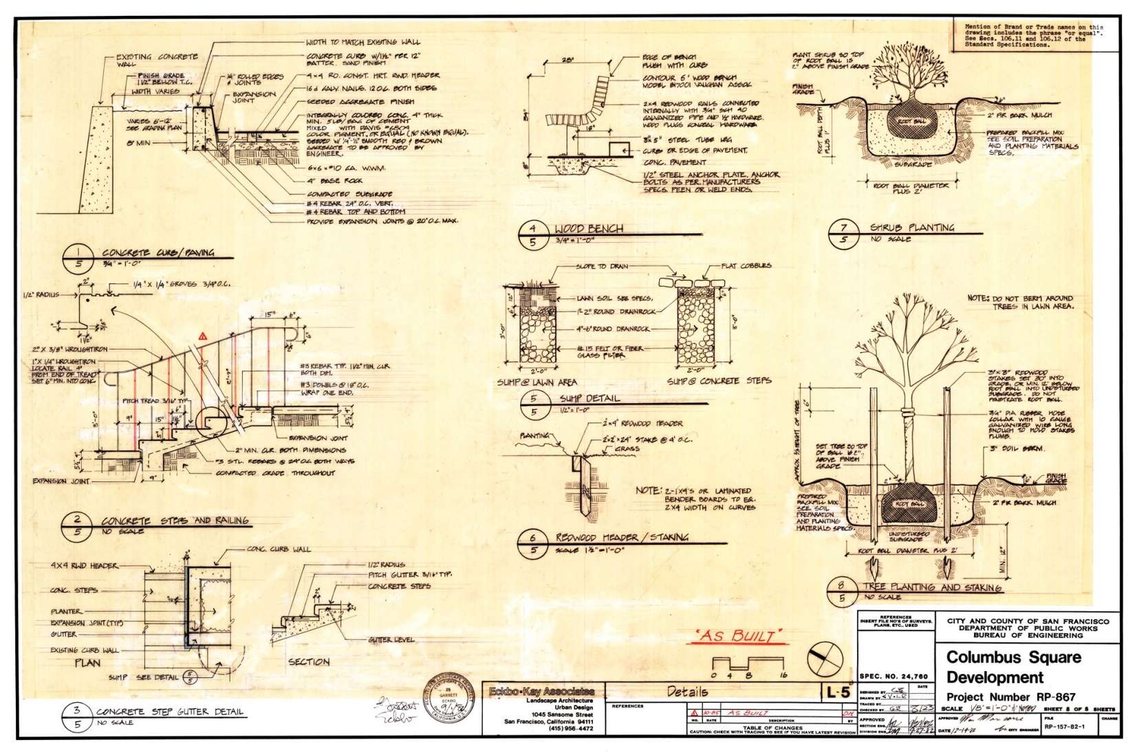 Below are original 1982 plan, paving and detail drawings by Garrett Eckbo with Eckbo Kay Associates.