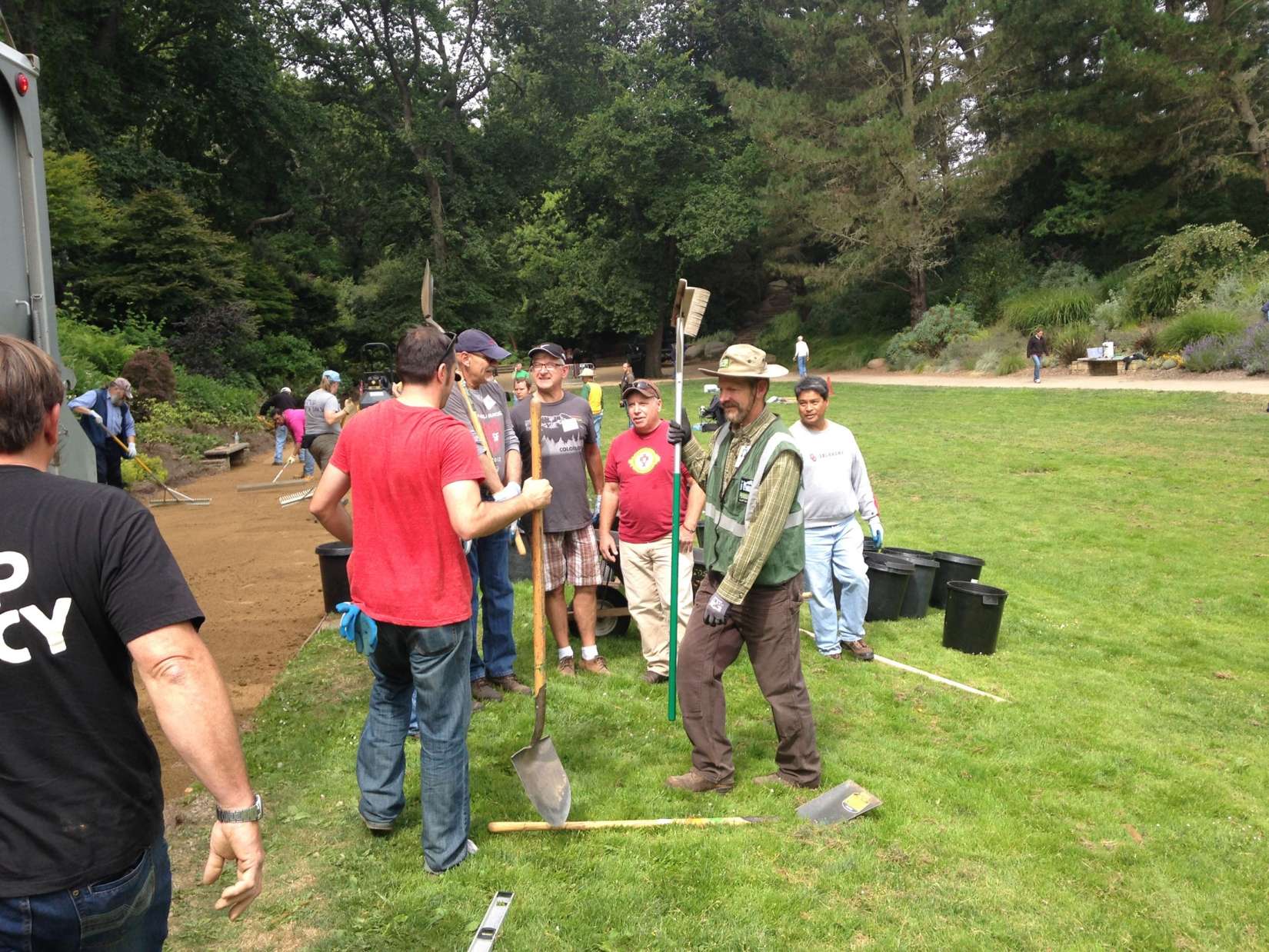 Our newest team member, K.C. Farrell (top left) volunteers at the National AIDS Memorial Grove in Golden Gate Park.