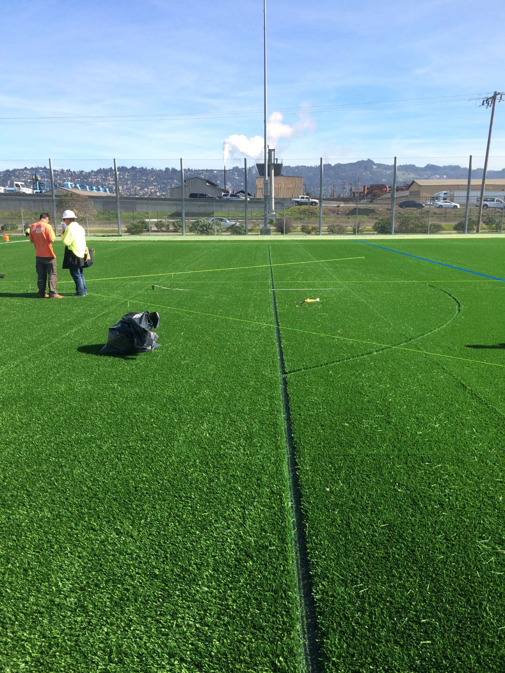 Carducci Associates has designed a sports complex that includes the thoughtfully-constructed wildness of a true park. On a recent walk through Fallon’s Phase 1, where our office’s planting design has had 10 years to grow in, this unique pairing of landscapes has matured. Baccharis pilularis, Salix lasiolepis, Platanus racemosa and Salvia ‘Pozo Blue’ shade and frame the enduring brightness of synthetic turf, the sharp geometry of adjacent basketball courts, and running paths. The playful contrast between maintenance and wildness, synthetic and natural, continues in Phase 2. Concentric mow pattern rings a baseball pitcher’s mound that echoes Dublin’s hills visible in the distance.